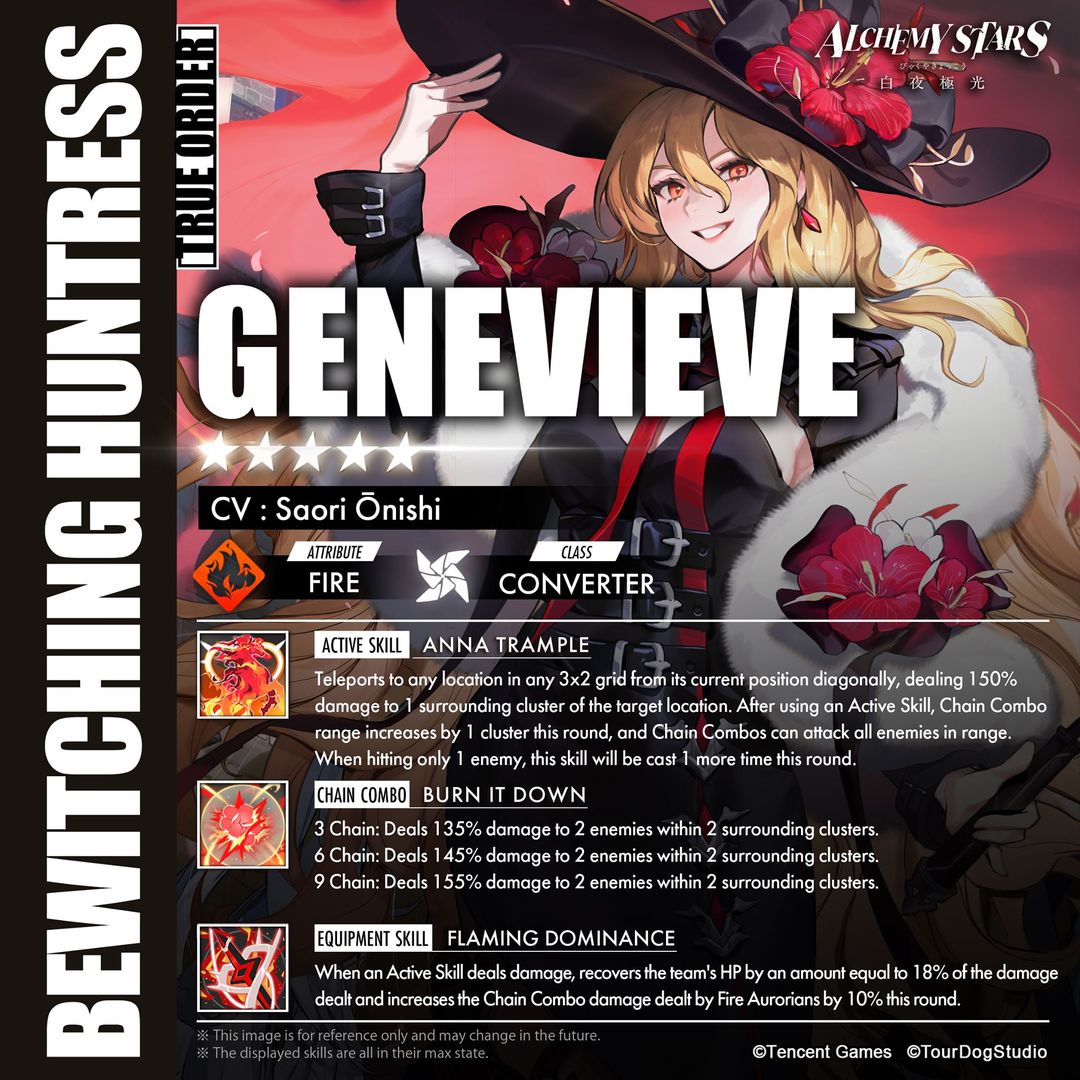 The latest addition to the five-star list in Alchemy Stars is Genevieve, who forms part of the Fire element and takes on the role of a Converter.