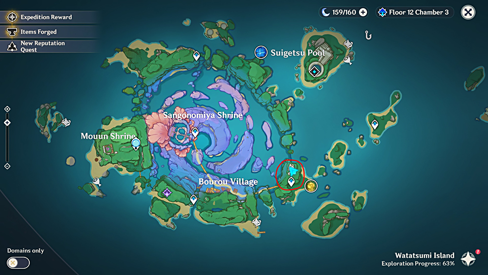 Players can find the 9 Cube Puzzle on Watatsumi Island in-game. The following image indicates the location, in a red circle, on the map: