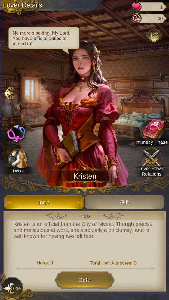 Created by ONEMT, it invites players to command a grand army of knights, generate alliances and build an empire. However, they can also date non-player characters (NPCs) and raise heirs.