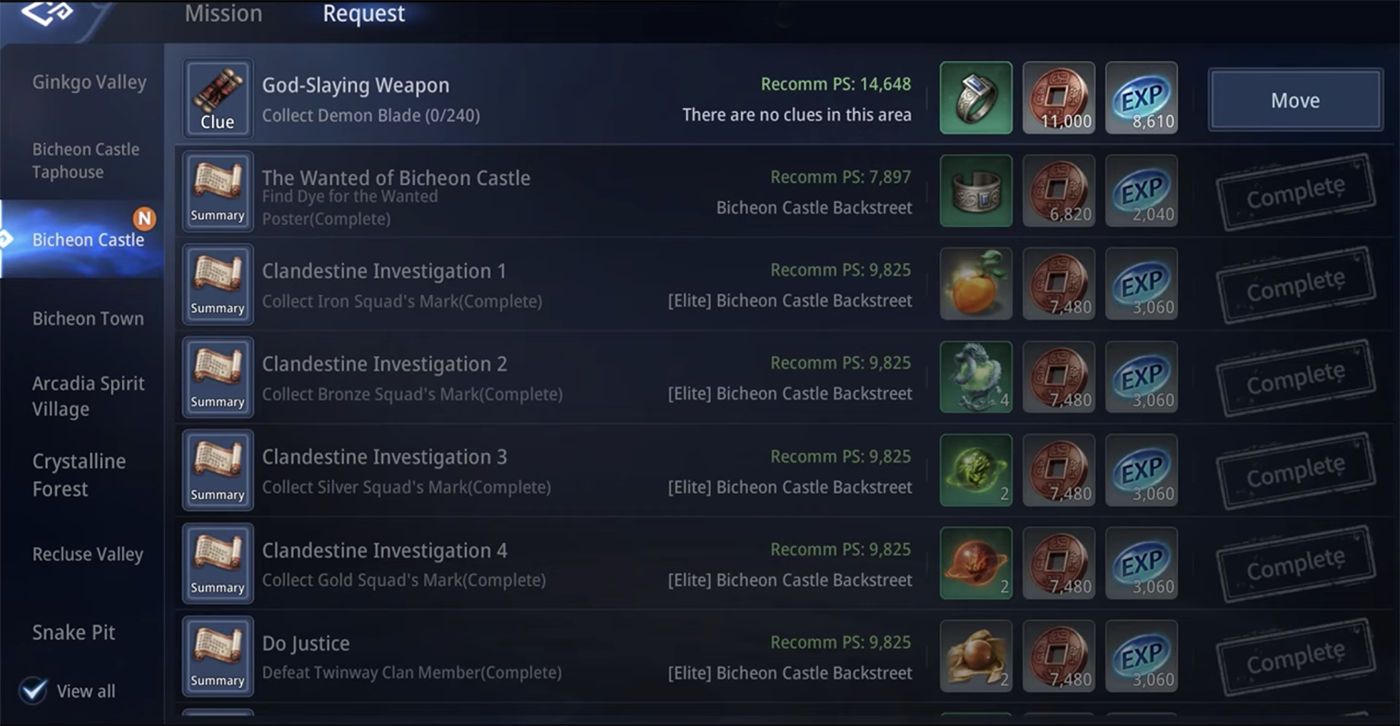 In order to start the quest, players need to open their Mission menu before selecting the Request option. Players will find the quest under the Bicheon Castle section. It is important to note that the recommended power score (PS) for this quest is 14,648. Players should also be aware that this mission is ranked A on the difficulty level.