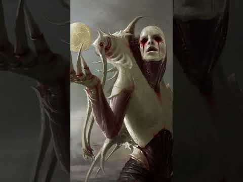 Phyrexians are often recognized by features like dripping ichor, eyelessness, cysts, and metallic components. Phyrexians in the Machine Orthodoxy often have porcelain-like armor replacing their skin.