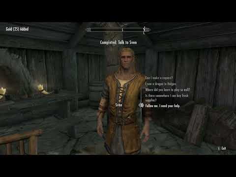 Sven’s primary skills are Alchemy, Enchanting, and Smithing. His secondary skills are Archery, One-Handed, and Two-Handed.